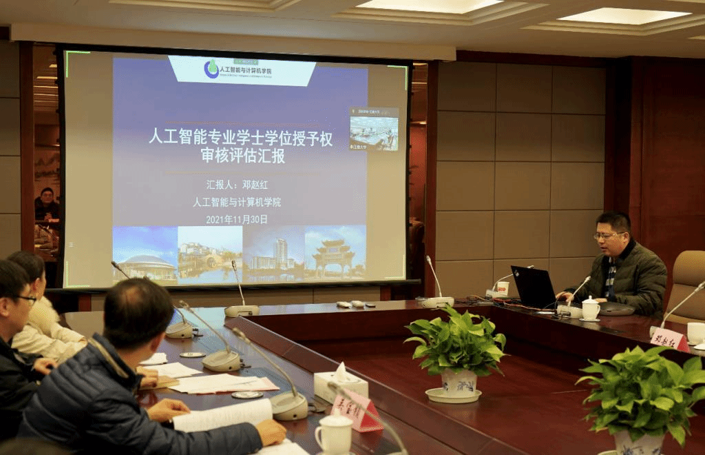 院长刘渊向评审组专家简要介绍了参会人员情况。评审专家组组长耿卫东教授介绍了评审专家组成员、评审要求及主要流程后,邓赵红教授分别从人工智能专业的专业定位、师资队伍、培养方案与课程设置、教学条件、教学规范及质量保障等六方面向专家组进行了详细汇报。汇报多角度展现了人工智能专业的专业特色,充分体现专业建设和人才培养的成效。在听完汇报后,专家组成员依次发言,充分肯定了江南大学人工智能专业的办学成果,一致认为江南大学人工智能专业建设成效初显,并就人工智能专业的教学资源、课程设置、学生实践训练等方面的进一步提升或完善提出了建设性的、针对性的建议。金米娱乐