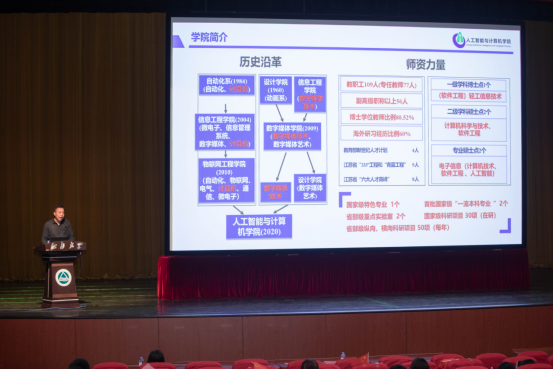 其后,刘渊院长宣读“智能之星”表彰决定并为“智能之星”颁发荣誉证书。吕天旭作为“智能之星”代表、在校生代表发言,他结合自己在江大的求学经历,分享了自身学习心得,并希望同学们能够在今后的学习生活中能够笑对改变、勇于尝试、勤于思考、进取奉献。