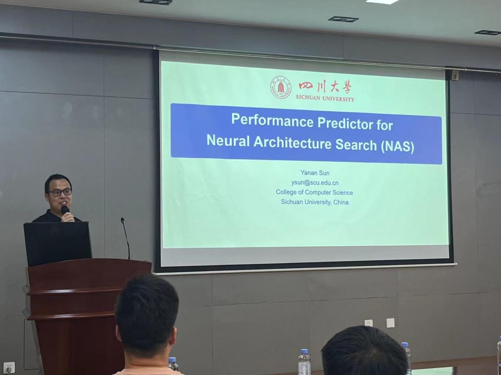 四川大学计算机学院的孙亚楠教授也在报告中分享了关于《加速神经架构搜索的性能预测器》的精彩研究成果,详细介绍了神经架构搜索和性能预测器的背景,并阐述了团队从神经网络结构增广和迁移学习的角度进行的高效性能预测器模型构建的相关工作。