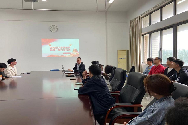 夏鸿斌以“西南联大家国情怀,“两弹一星”科技报国”为题,围绕西南联大结茅立舍、弦歌不辍,“两弹一星”背后的故事为主要内容,带我们走进了战火纷飞中的另一个战场。他讲述了西南联大的创建背景,教学环境和成就辉煌的教育逻辑,强调了先辈们的学习信念。之后他又为我们讲述了“两弹一星”的故事,强调了学习"两弹一星"精神的重要性。他指出教育要同国家之命运、民族之前途紧密联系起来。夏鸿斌在讲话最后呼吁我们要做有历史感责任感、志存高远的时代新人。