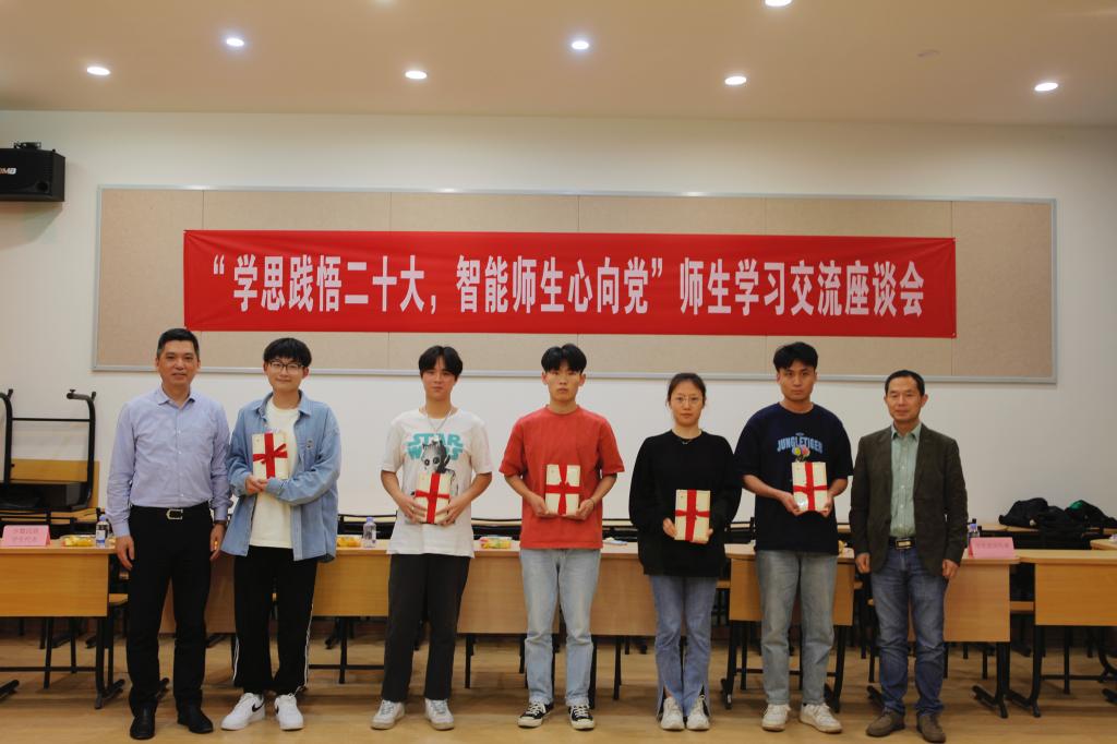 “学思践悟二十大,智能师生心向党”师生学习交流座谈会在学院B109召开。学院副院长 (主持工作)方伟、党委书记张华、分团委书记沈丹、辅导员王牧、戴士焱、张海月及学生代表20余人参加了会议。会议由分团委书记沈丹主持。