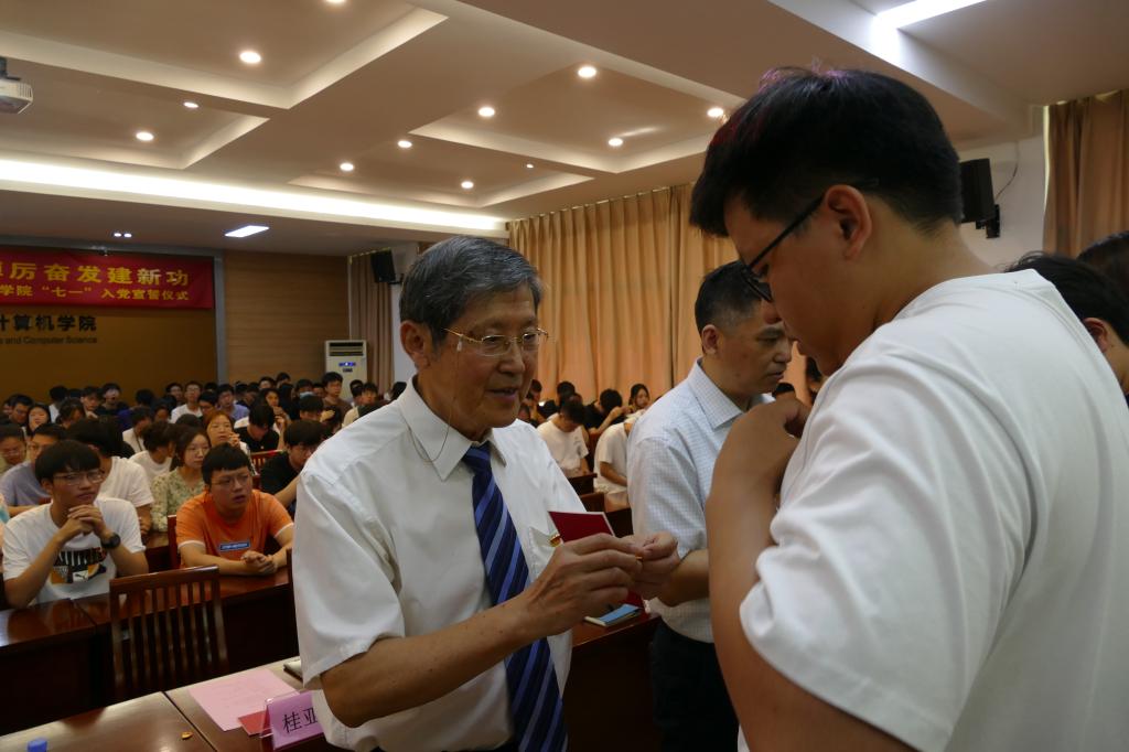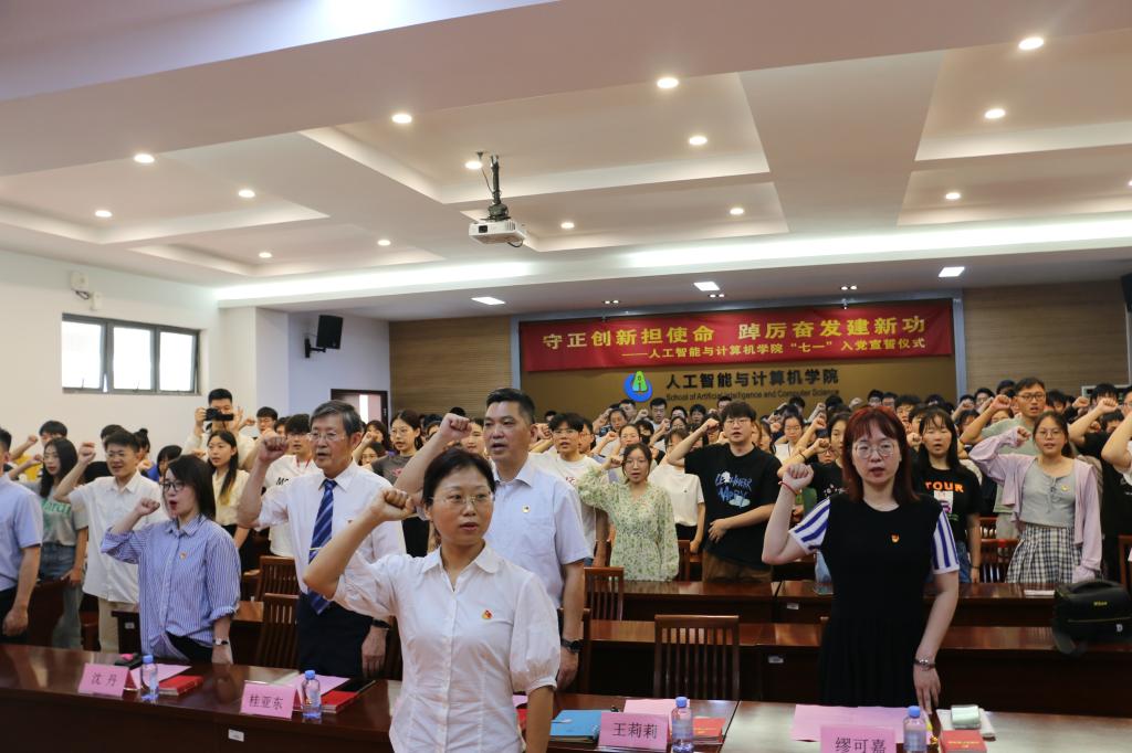活动在庄严的《国际歌》中开始。专职组织员缪可嘉宣读了37名新党员名单,副书记王莉莉带领全体党员进行了入党宣誓。计算机本科生第一党支部周云飞代表新党员发言,展示了智能学子立志成为有理想、敢担当、能吃苦、肯奋斗的新时代好青年的优良风貌。党委书记张华寄语全体学生党员同志,要在理论学习中坚定理想信念,要在专业学习中引领学风建设,要在无私奉献中实现价值追求,与祖国共进、与时代同行,为学院的高质量发展,学校“双一流”建设作出贡献。