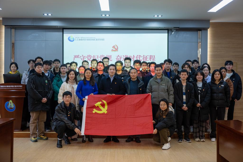 计算机研究生第一党支部“严守党纪党规奋进时代征程”主题党日活动,学院党委委员、院长方伟,党委副书记、副院长王莉莉,以及党支部全体成员出席活动。活动由支部青年教师、学院分团委书记王园园主持。