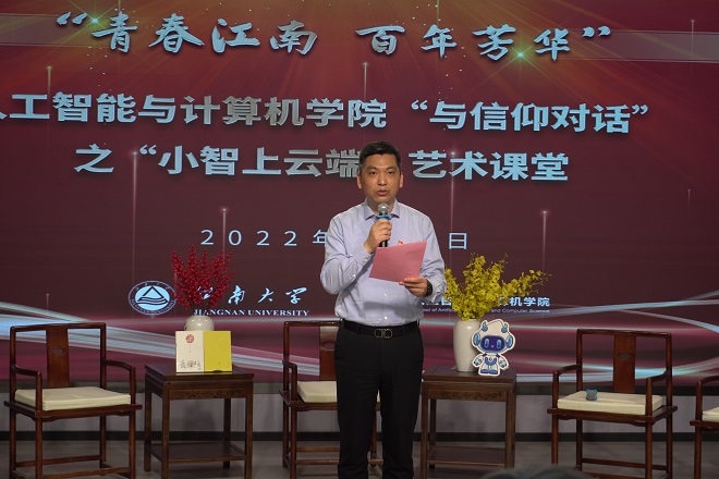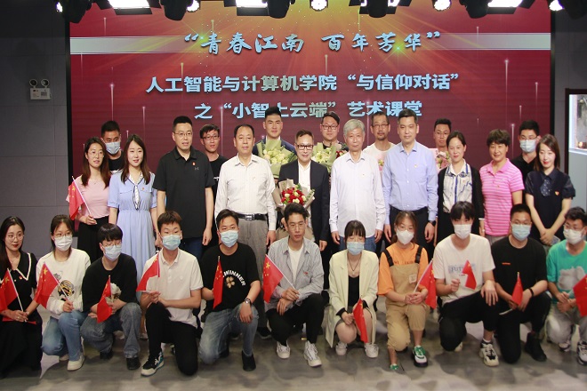 “与信仰对话”之“小智上云端”艺术课堂顺利举办。无锡市教育系统关工委常务主任张志新、无锡市教育信息化和装备管理服务中心主任顾军、江南大学团委书记魏珍吉,江南大学关工委副主任娄国栋,金米娱乐
