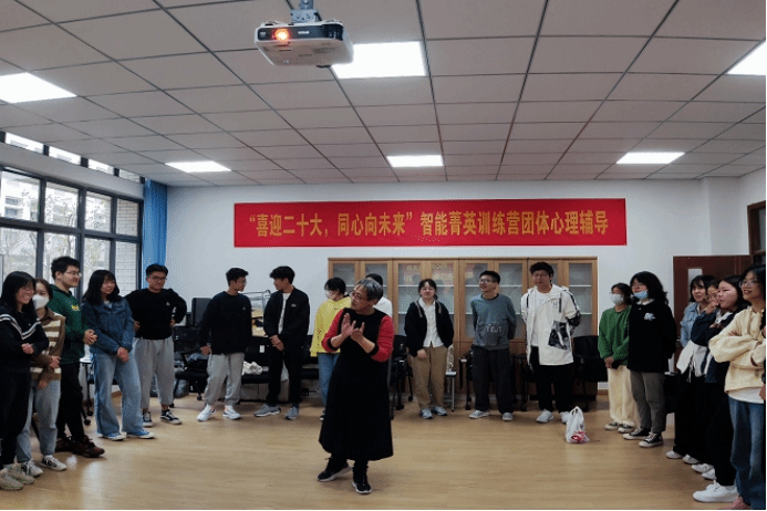 特邀江南大学校医院副主任医师、国家二级心理咨询师沈力晔老师在学院团体辅导室开展“喜迎二十大,同心向未来”智能菁英训练营团体心理辅导,我院心理辅导员杨玉莹以及2022级本科班长、团支书和心理委员共36名菁英训练营成员参与本次团辅。