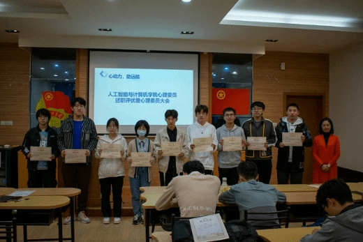 在信息楼青年活动室开展主题为“心动力,助远航”心理委员述职评优暨学院心理委员大会。院党委副书记兼副院长陈祎、学院心理辅导员杨玉莹以及全院本硕共61名心理委员参加本次大会,会议由青年志愿者协会马婧雯同学主持。