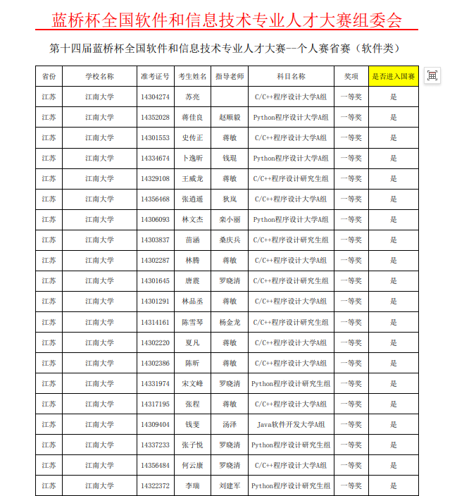 近日,第十四届“蓝桥杯”全国软件和信息技术专业人才大赛个人赛江苏省赛落下帷幕,大赛吸引来自南京大学、东南大学、南京理工大学、苏州大学等众多高校的选手同台竞技。我校学子在比赛中沉着冷静,出色发挥,金米娱乐