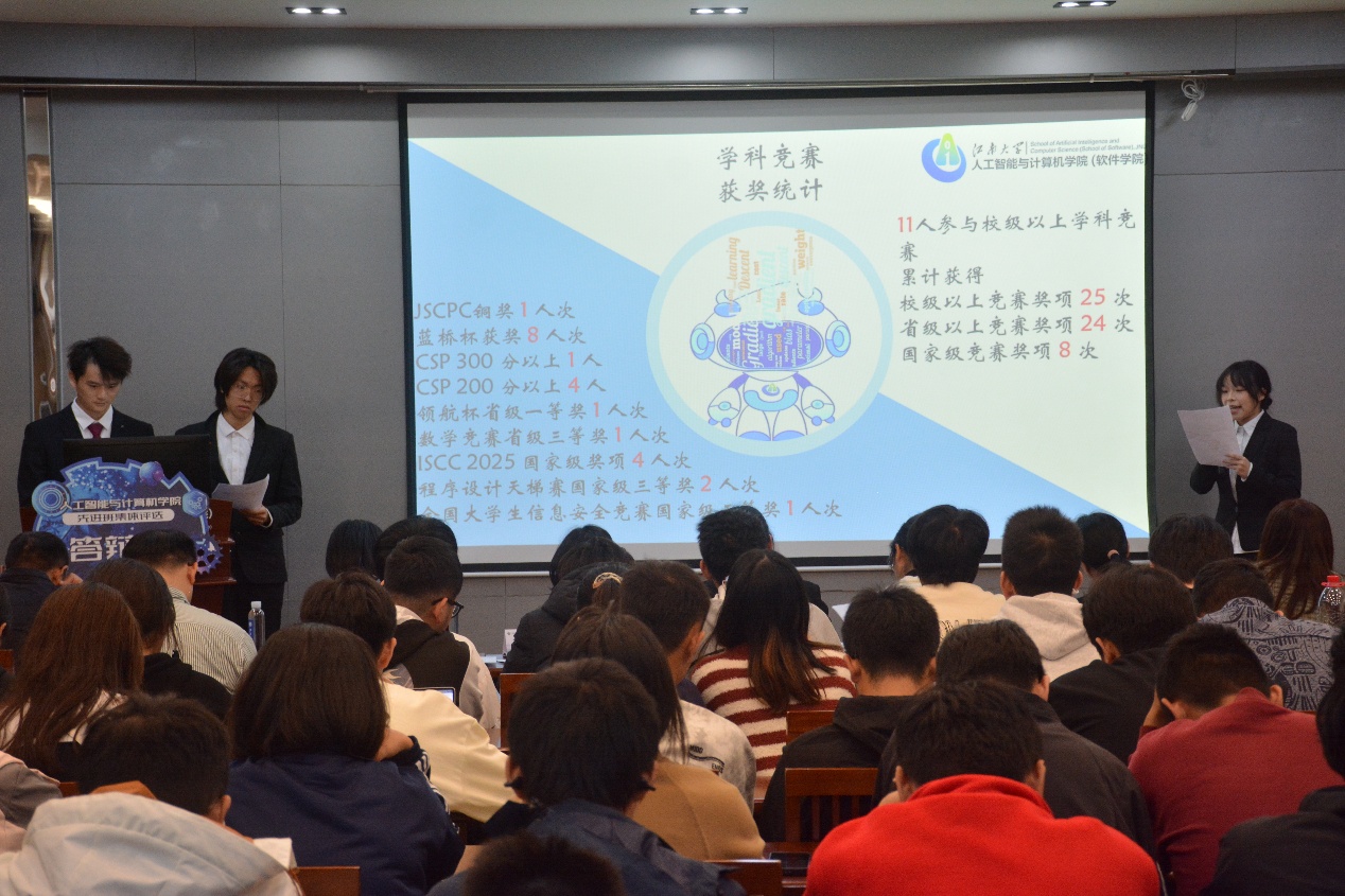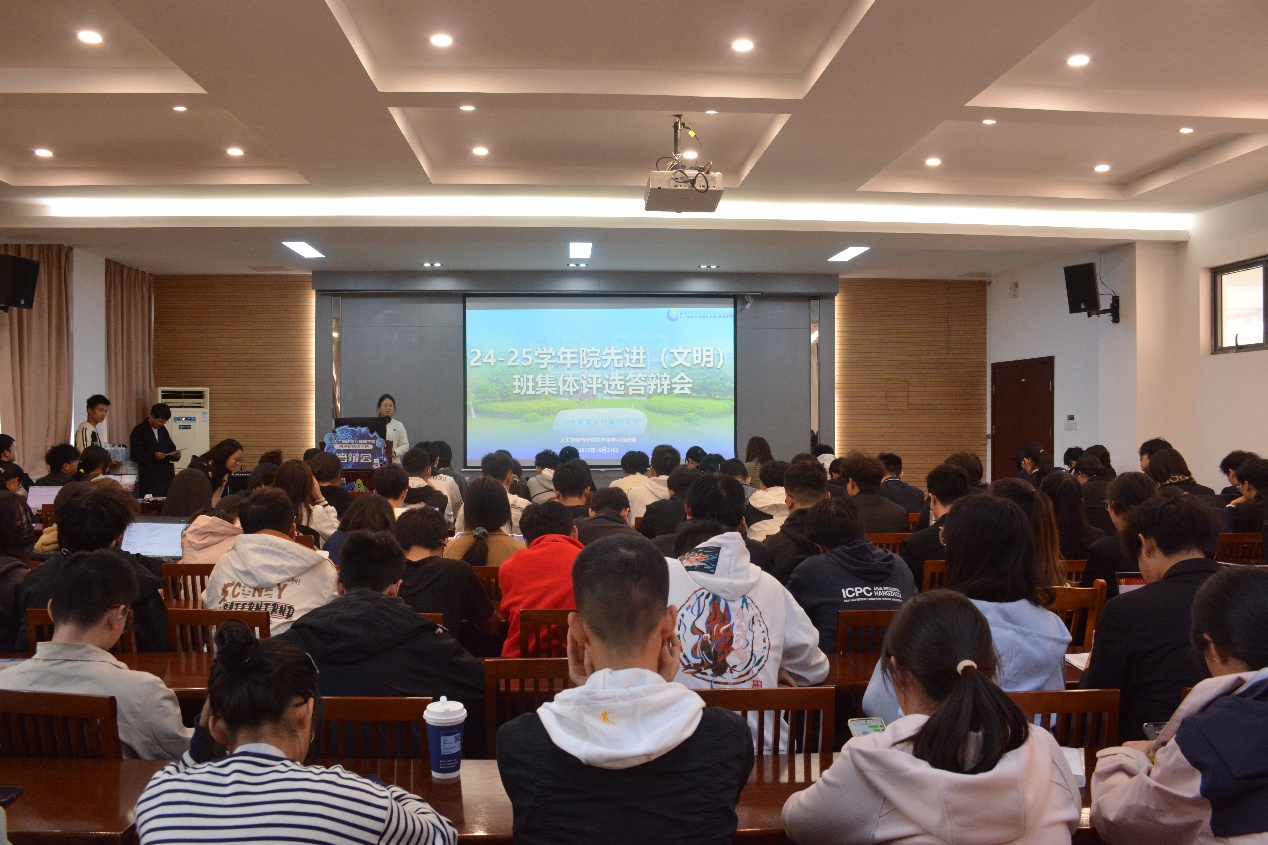 2024-2025学年先进班集体评选答辩会在学院B310报告厅顺利举办。校学生工作处管理科正科级干部杨艳;学院党委副书记、副院长王莉莉,班主任代表、院长助理陈璟,院长助理、江苏省先进班集体班主任张欣,研究生辅导员张海月出席活动。活动由计科2502陈国宇主持。