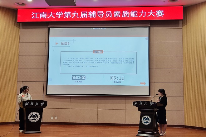 本届辅导员素质能力大赛对标国赛新赛制,初赛为基础知识测试,经过激烈比拼,辅导员戴士焱、王牧与其他20位优秀辅导员入围决赛。决赛设置有案例研讨和谈心谈话两个环节,分别考察辅导员研讨实际问题和教育引导学生的能力。辅导员戴士焱、王牧在案例研讨环节运用相关学科知识和方法开展大学生思想政治教育、分析研判、解决问题,在谈心谈话环节准确把握大学思想政治教育理论及政策,把握学生成长成才规律,注重将解决理论困惑和实际问题相结合,在众多优秀的辅导员中脱颖而出,展露锋芒。