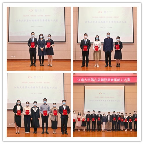 不忘初心、牢记使命,立德树人、筑梦江南。5月12日-13日,江南大学第九届辅导员素质能力大赛决赛在远东报告厅成功举办,相关职能部门领导和辅导员导师担任大赛评委。我院辅导员戴士焱荣获一等奖,辅导员王牧荣获三等奖,创下历史最佳成绩。