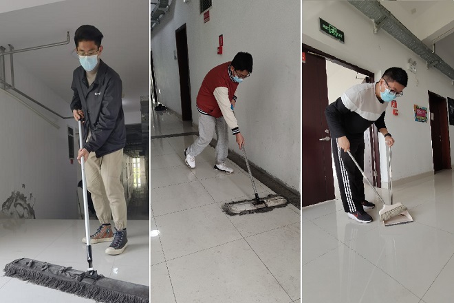 在张书记和辅导员老师的带领和指导下,党员同志们和研会负责人与志愿者们一起对学院1至6层的楼道、卫生间、楼梯间等卫生区展开认真细致的清扫工作。大家严格遵守疫情防控要求,在做好个人防护的前提下,充分发挥“不怕苦、不怕累”的精神,分工协作、互相配合、合力清扫,活动过程井然有序、人员配合迅速默契。