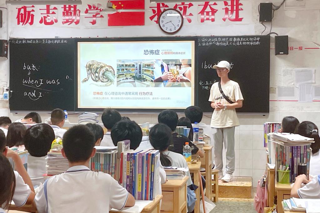 实践团分赴衡东楚天中学、衡东县第一中学,为百余名中学生开展心理健康科普讲座。团队成员以幽默风趣的语言、生动鲜明的案例向同学们介绍了焦虑症、抑郁症、双相情感障碍等多种中学生常见的心理疾病,深入浅出地为同学们讲述正确控制情绪、缓解学习压力的方法,并通过互动问答、案例研讨等形式,让在场的同学们正确认识心理健康,鼓励他们在遇到心理困扰时积极寻求外界支持,做到“早预防、早识别、早干预、早治疗”。讲座现场,学生们积极互动,踊跃提问,主动提出自己目前存在的困难,吴佳伟结合自己的实际经历为学弟学妹们传授学习经验,一一疏通心结,并送上团队成员为他们精心准备的“如何守护社交媒体时代下的心理健康”青少年心理健康服务指南。