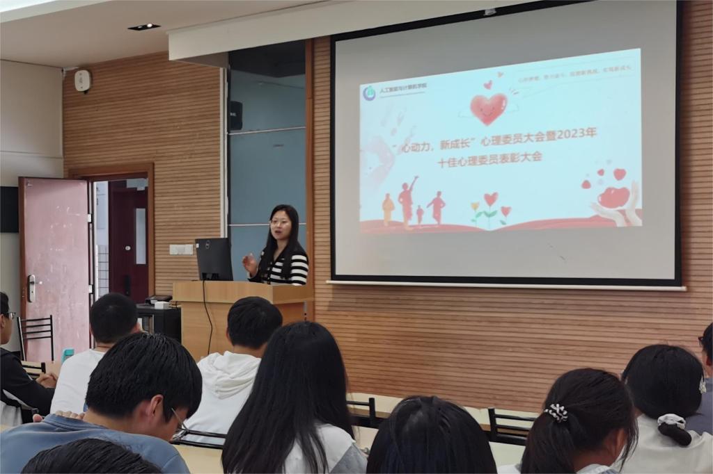 于10月25日中午在学院B109会议室开展“心动力,新成长”心理委员大会暨2022-2023学年十佳心理委员表彰大会。学院党委副书记、副院长王莉莉,心理辅导员杨玉莹以及全体心理委员参加本次大会。
