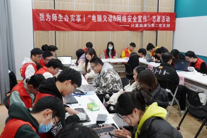 计算机本科第二党支部发挥专业特长,在南区“一站式”学生社区举办电脑义诊志愿活动。