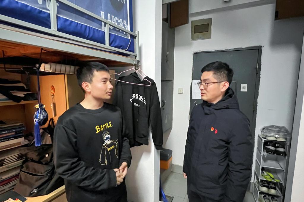 根据学校对寒假学生公寓安全工作的部署及学院领导工作指示,1月19日,学院学工办主任兼分团委书记王园园、学工办副主任杜磊及全体辅导员对留校学生宿舍开展安全大检查。走访过程中,老师们向留校同学宣传解读寒假留校学生管理规定,强调留校期间务必留意宿舍用电安全、人身财产安全等事项,确保学生在校学习和生活期间安定祥和。