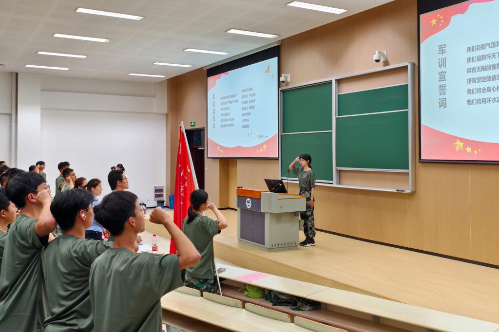会议在庄严的国歌中拉开序幕。刘璇刚作军训动员讲话。他强调,参训学生要充分认识军训的重要意义,以高昂的热情、积极的精神面貌投身军事训练;要严格遵守军训纪律,以军人的标准严格要求自己;要直面挑战,在军训中练出钢铁作风,为大学生涯打下坚实基础。退伍学生代表计科2102班周云飞通过讲述自己参军报国的故事,启发参训学生发扬勇毅拼搏的精神,培养顽强不屈的品质,像军人一样练就铮铮铁骨。新生代表人工智能2404班唐仕晟表示,军训期间将严格服从命令,听从指挥,发扬自强不息、勤劳勇敢的精神品格,争做优秀的智能学子。会上,王莉莉为参训学生代表授予军训旗帜,并作总结发言。她阐述了军训工作的重要意义及学院历来重视国防教育的优良传统,向参训学生提出三点希望:一是要坚定理想信念,永葆家国情怀;二是要坚持刻苦训练,砥砺精神品格;三是要坚决听从指挥,做到令行禁止,鼓励同学们用实际行动争做担当民族复兴大任的时代新人。