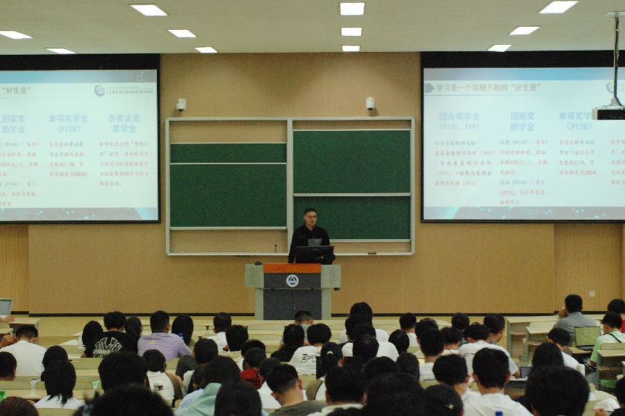 本科生综合素质测评实施细则》《江南大学本科生综合奖学金评审办法》等文件对综合素质测评、学生奖学金、各类学生荣誉的评定作出详细讲解。最后,他结合学校近两年处分案例,对学生违纪处分规定进行解读,勉励新生要“守底线、扬高线”,争做遵纪守法、全面发展的智能学子。