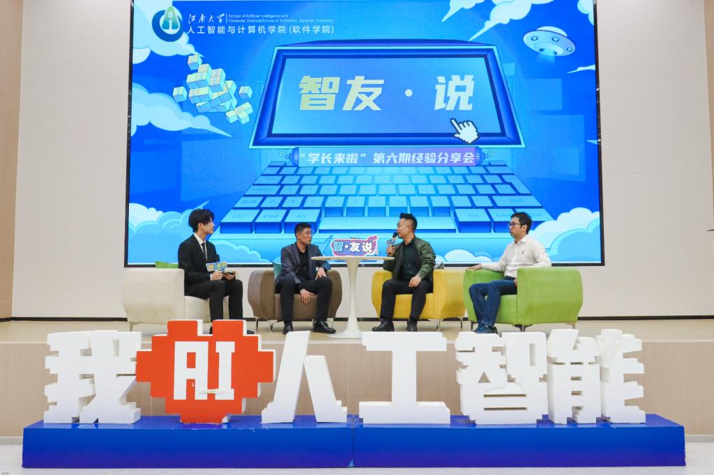 主题分享环节,孟永波以《梦想与现实的碰撞》为题,分享了自己在人工智能领域的创业历程,他希望学生积极投身创新创业浪潮,不断开拓进取,书写青春奋斗故事。王成玉围绕人工智能伦理和社会责任进行分享,他结合实际案例和实证分析,引导学生构建AI时代的道德基石,彰显青年人的责任与担当。张德磊通过分享人工智能领域的发展趋势和就业前景,鼓励学生紧跟时代脉搏,尽早做好职业生涯规划,以不懈努力成就精彩人生。