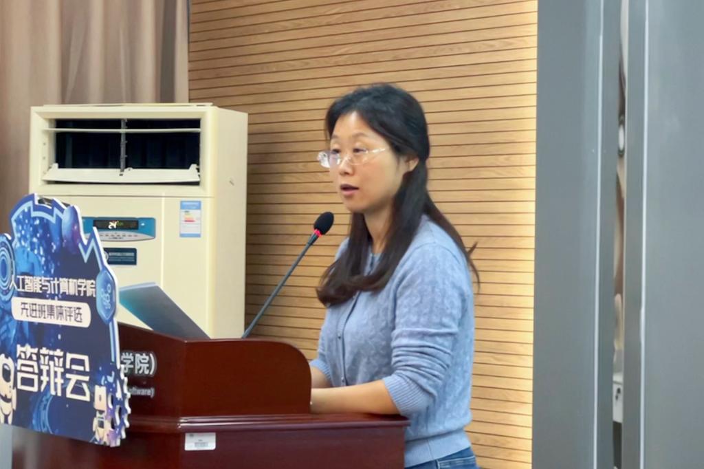 王莉莉总结发言。她表示学院先进班集体评选活动展示了班级积极向上的精神风貌、集体凝聚力和团队协作精神。从搭建平台,供同学们互相交流学习;选拔典型,发挥榜样引领作用;查缺补漏,寻找未来努力方向三个方面,阐释了学院先进班集体评比这项活动的目的和意义。鼓励各班级相互学习,主动建设,形成良好的班级文化和风气。