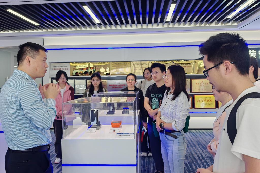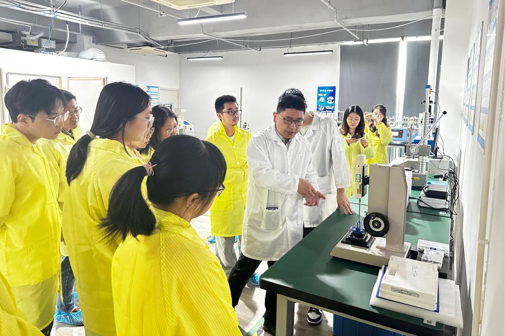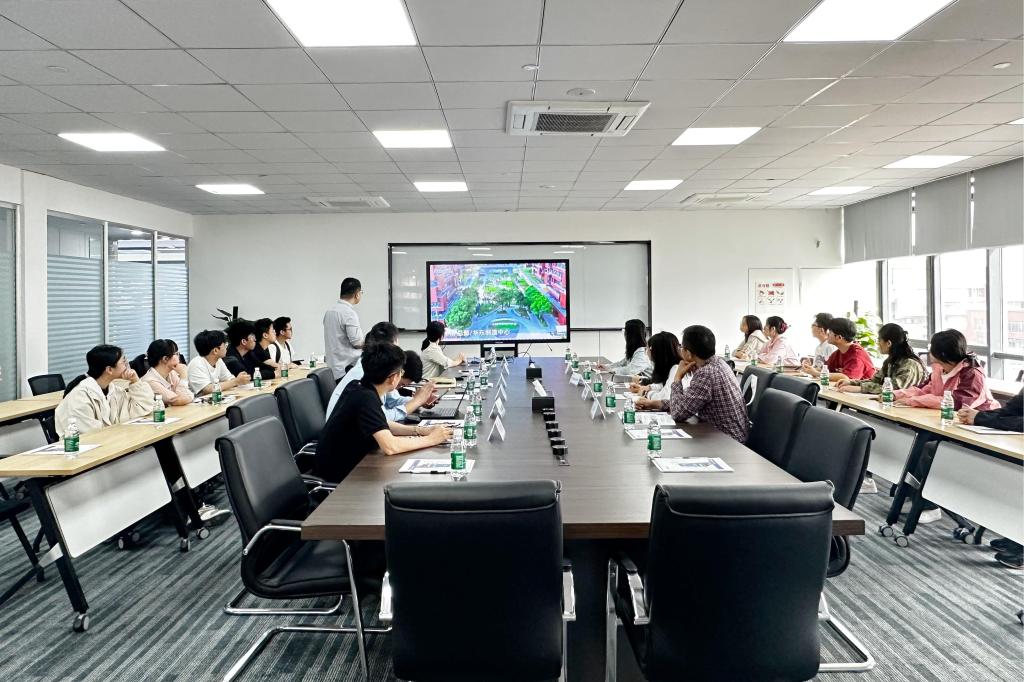 在魏江涛及各部门负责人的带领下,师生一行走进企业核心区域,依次参观公司文化展厅、开放式办公区、前沿实验室及产品生产车间,师生们沉浸式感受企业氛围,直观了解产品从研发设计、精密测试到规模化生产的全流程,对企业的技术实力与生产工艺有了更具象化的认知。同学们还就实习申请、春招时间节点、岗位技能需求等问题积极与HR交流。